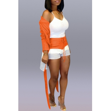 Lovely Casual Patchwork Jacinth Two-piece Shorts Set