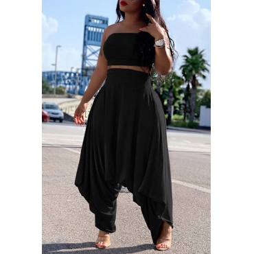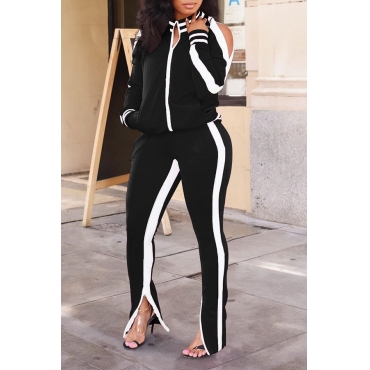 Lovely Casual Patchwork Blackish Black Two-piece Pants Set