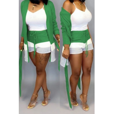 Lovely Casual Patchwork Green Two-piece Shorts Set(Without Tank Top)