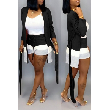 Lovely Casual Patchwork Black Two-piece Shorts Set