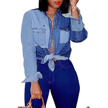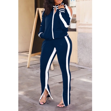 Lovely Casual Patchwork Blackish Deep Blue Two-piece Pants Set