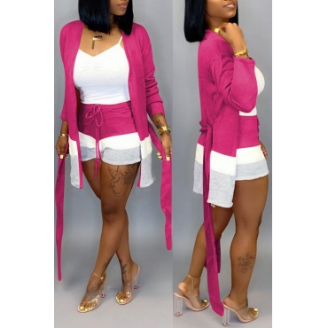 Lovely Casual Patchwork Rose Red Two-piece Shorts Set(Without Tank Top)