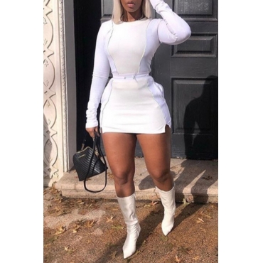 Lovely Casual Basic Patchwork White Two-piece Skirt Set