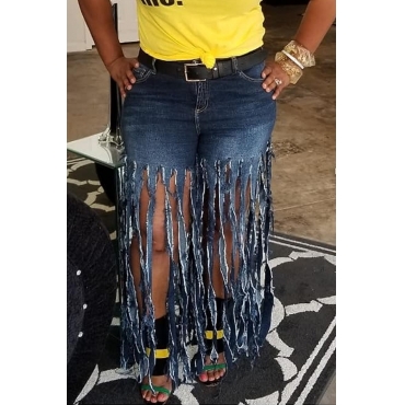 Lovely Trendy Tassel Design Deep Blue Jeans