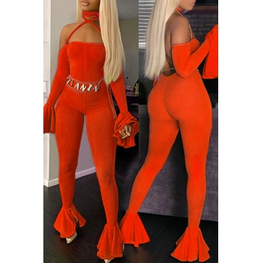 Lovely Sexy Backless Orange One-piece Jumpsuit(Without Accessory)