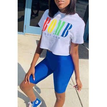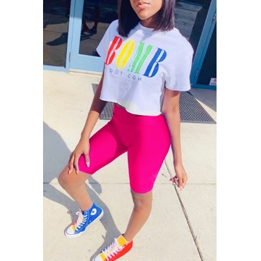 Lovely Trendy Letter Printed White Two-piece Shorts Set