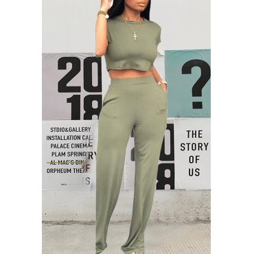 Lovely Casual O Neck Pockets Design Light Green Two-piece Pants Set