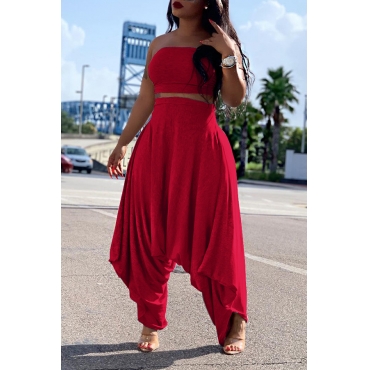 Lovely Casual Loose Rose Red Two-piece Pants Set