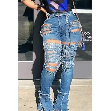 Lovely Leisure Patchwork Blue Two-piece Pants Set