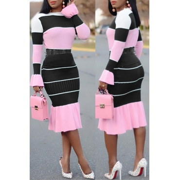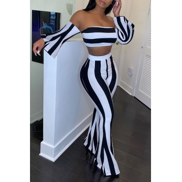 Lovely Trendy Off The Shoulder Striped Printed Black Two-piece Pants Set
