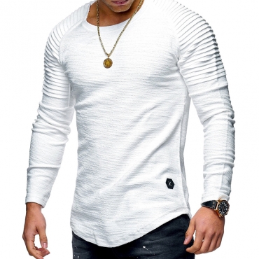 Lovely Men Casual O Neck Ruffle Design White T-shirt