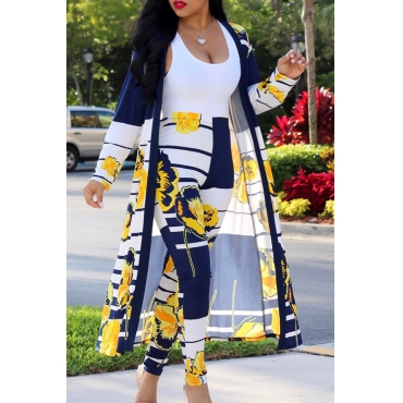 Lovely Stylish High Waist Printed Yellow Two-piece Pants Set