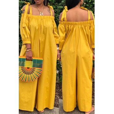 Lovely Leisure Lace-up Loose Yellow One-piece Jumpsuit