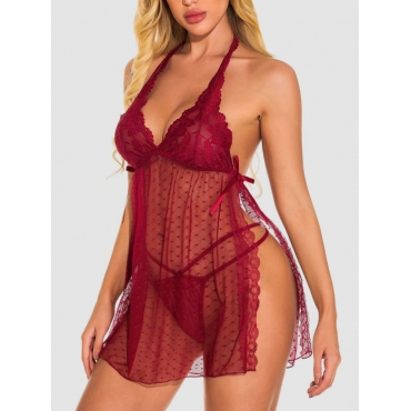 Lovely Sexy Backless See-through Split Wine Red Babydoll