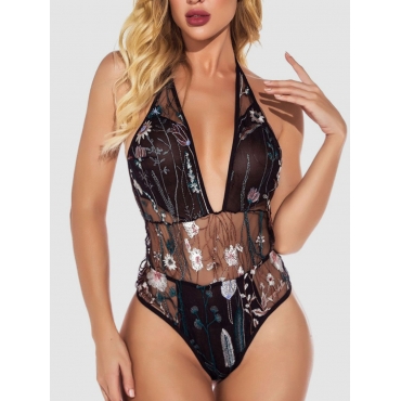 Lovely Sexy Floral Backless See-through Black Teddies