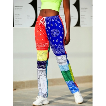Lovely Casual Paisley Print Drawstring Red Pants