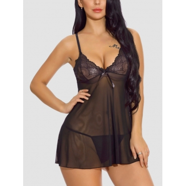 Lovely Sexy See-through Lace-up Black Babydoll