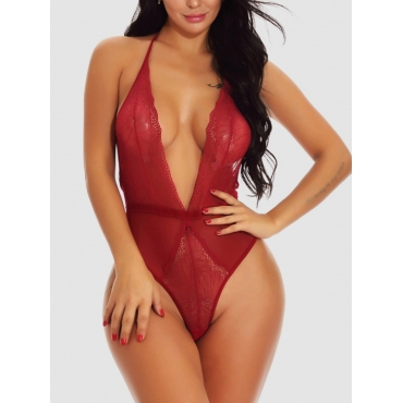 Lovely Sexy Mesh Backless Bandage Design Wine Red Teddies