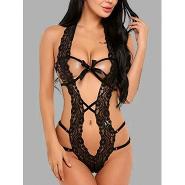 Lovely Sexy Bandage Hollow-out Design Black Teddies
