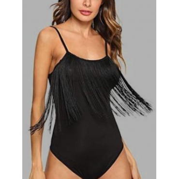 Lovely Casual U Neck Tassel Design Black Teddies