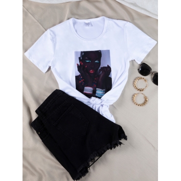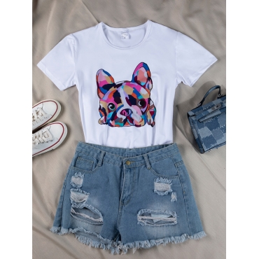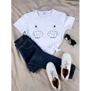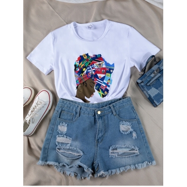 Lovely Casual O Neck Graffiti Print White T-shirt