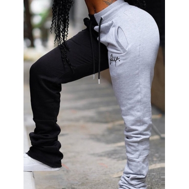 Lovely Casual Fold Design Drawstring Patchwork Grey Plus Size Pants
