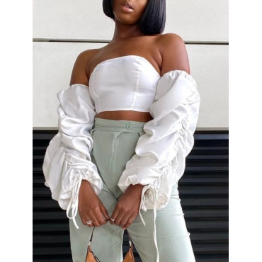 Lovely Chic Off The Shoulder Fold Design Drawstring White Blouse