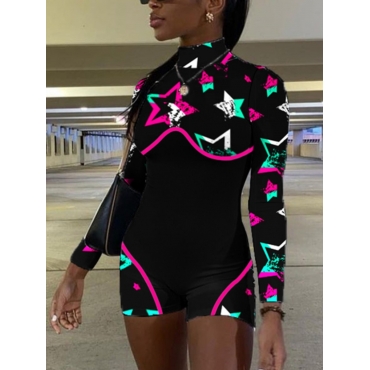 Lovely Trendy Star Print Patchwork Black One-piece Romper
