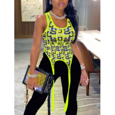 Lovely Street U Neck Geometric Print Asymmetrical Yellow Camisole