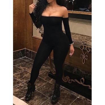 Lovely Sweet Off The Shoulder Basic Skinny Black Plus Size One-piece Jumpsuit