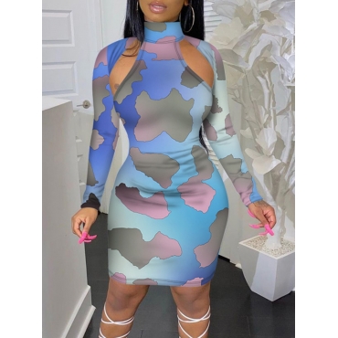 Lovely Street Turtleneck Camo Print Hollow-out Multicolor Knee Length Dress