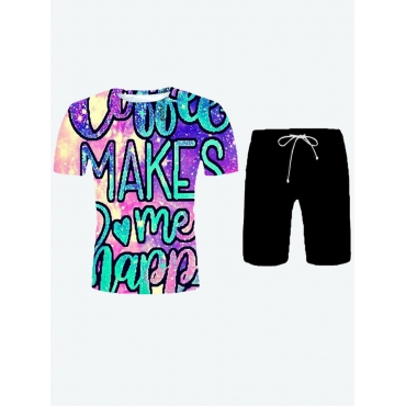 Lovely Chic Letter Print Gradient Multicolor Men Two Piece Shorts Set