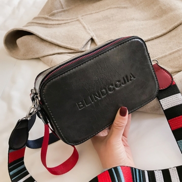 Lovely Casual Striped Letter Print Black Crossbody Bag