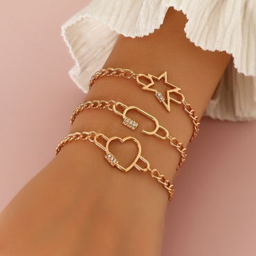 Lovely Casual Star Heart-shaped Gold Bracelet