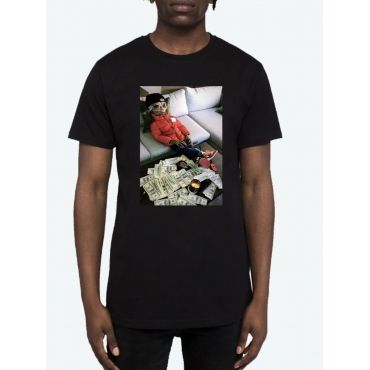 Lovely Casual O Neck Money Print Black Men T-shirt