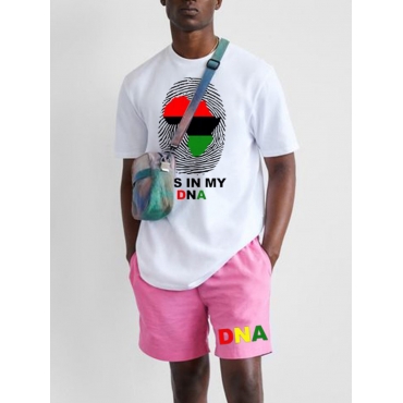 Lovely Sportswear O Neck Letter Print Drawstring White Men Two Piece Shorts Set