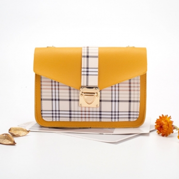 Lovely Casual Plaid Print Chain Decoration Yellow Crossbody Bag