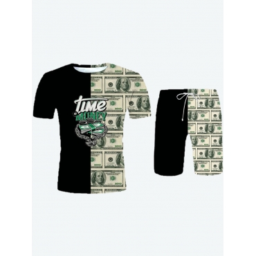 Lovely Casual Money Print Patchwork Black Men Two Piece Shorts Set