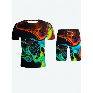 Lovely Casual O Neck Graffiti Print Multicolor Men Two Piece Shorts Set
