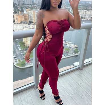 Lovely Street Bandage Hollow-out Design Red One-piece Jumpsuit