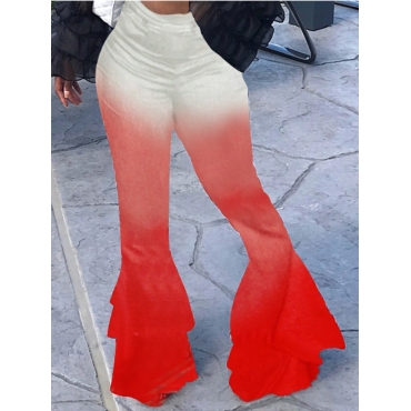 Lovely Casual Mid Waist Gradient Flared Red Pants