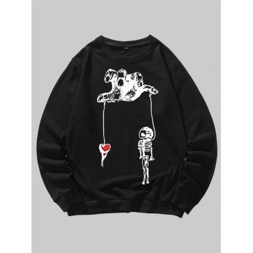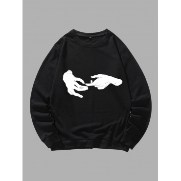 Lovely Casual O Neck Hand Print Black Men Hoodie