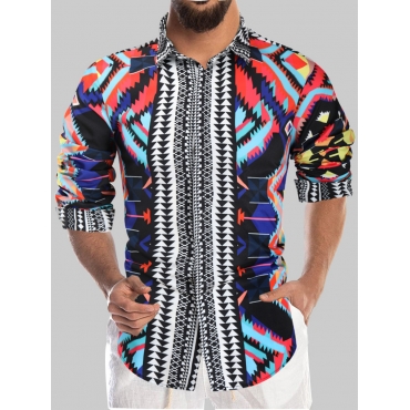 Lovely Casual Turndown Collar Geometric Print Multicolor Men Shirt