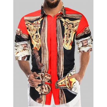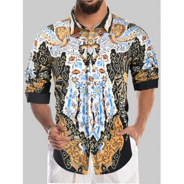 Lovely Vintage Turndown Collar Print Patchwork Multicolor Men Shirt