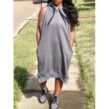 Lovely Casual Hooded Collar Sleeveless Grey Mid Calf Dress