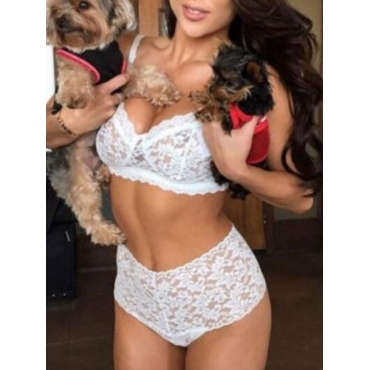 Lovely Sexy Deep V Neck Backless Floral White Teddies