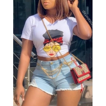 Lovely Casual O Neck Cartoon Print White T-shirt