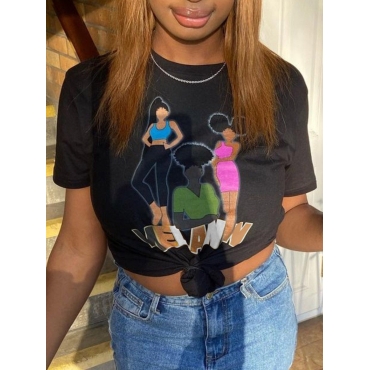 Lovely Casual O Neck Graffiti Print Black T-shirt