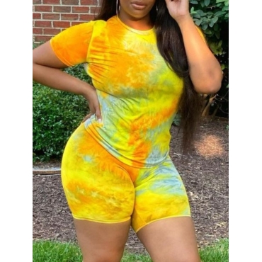 Lovely Casual O Neck Tie-dye Croci Plus Size Two-piece Shorts Set