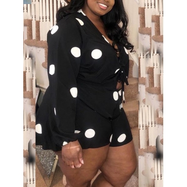 Lovely Casual Dot Print Hollow-out Black Plus Size One-piece Romper